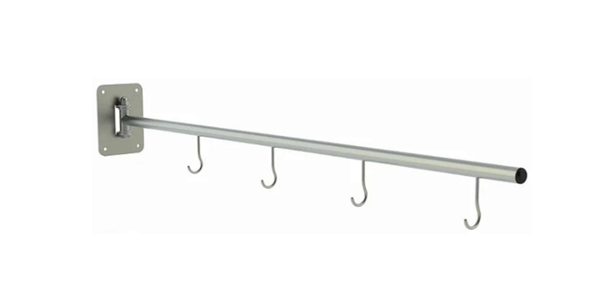 - Haste removível em tubo de aço inox redondo, com 04 ganchos